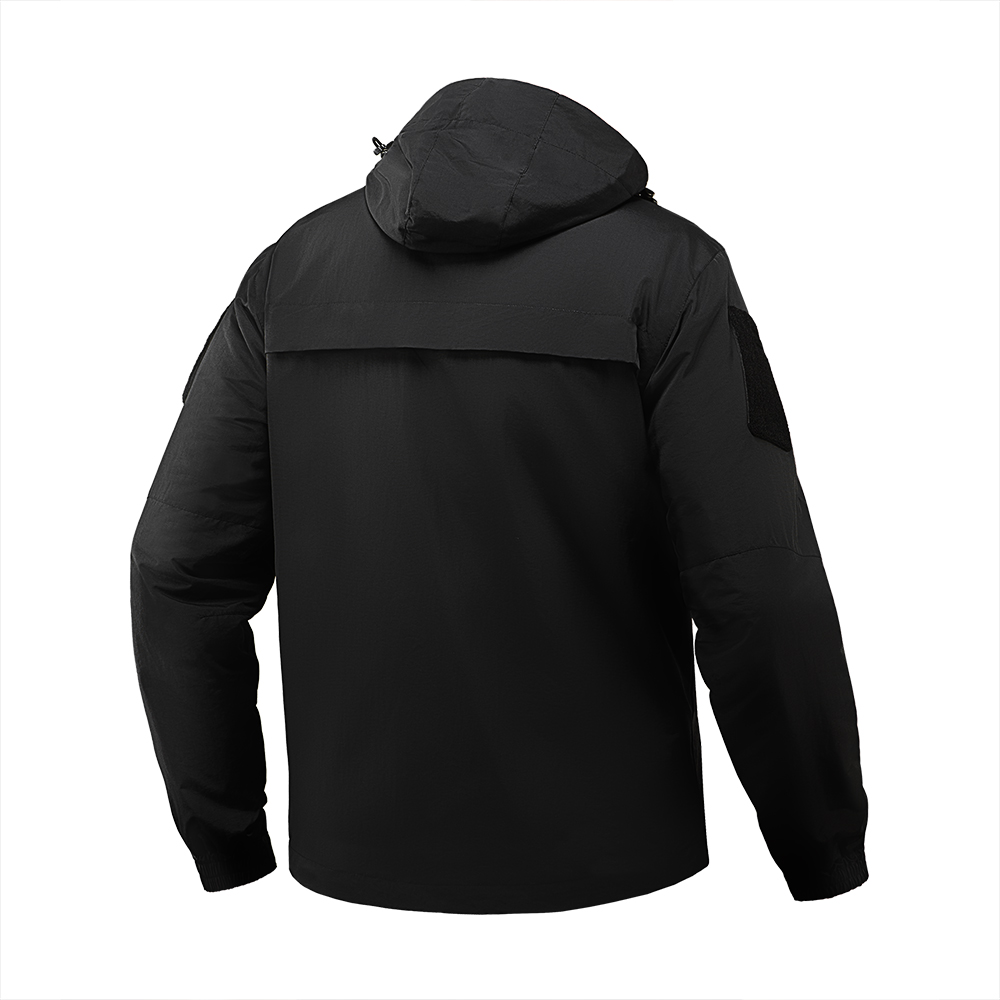 The M-TAC SHERIFF JACKET is a high-quality, functional jacket perfect for both everyday wear and professional use. Crafted from 100% nylon, the jacket is lightweight, durable, and water-repellent. It features a soft fleece lining on the front panels and back, while the inner side of the hood and sleeves is lined with branded lightweight fabric for added comfort. The front of the jacket includes two large zippered pockets with high-quality zippers from Japanese brand YKK. The sleeves are equipped with spacious pockets and Velcro panels that include slots for pens or similarly sized tools. Additionally, the lower part of the left sleeve features a small zippered pocket. The M-Tac Sheriff Jacket comes with a non-removable, adjustable hood that can be conveniently tucked into the stand-up collar when not in use. The hem is adjustable via an elastic drawcord with a stopper, while the sleeves can be adjusted using Velcro tabs. Season: Mid-season (Spring/Autumn) Materials: Shell: 100% Nylon Lining: 100% Polyester Hardware: YKK Features: 2 front zippered pockets 2 sleeve pockets with Velcro panels Small zippered pocket on lower left sleeve Adjustable hood that stows into the collar Adjustable hem and cuffs